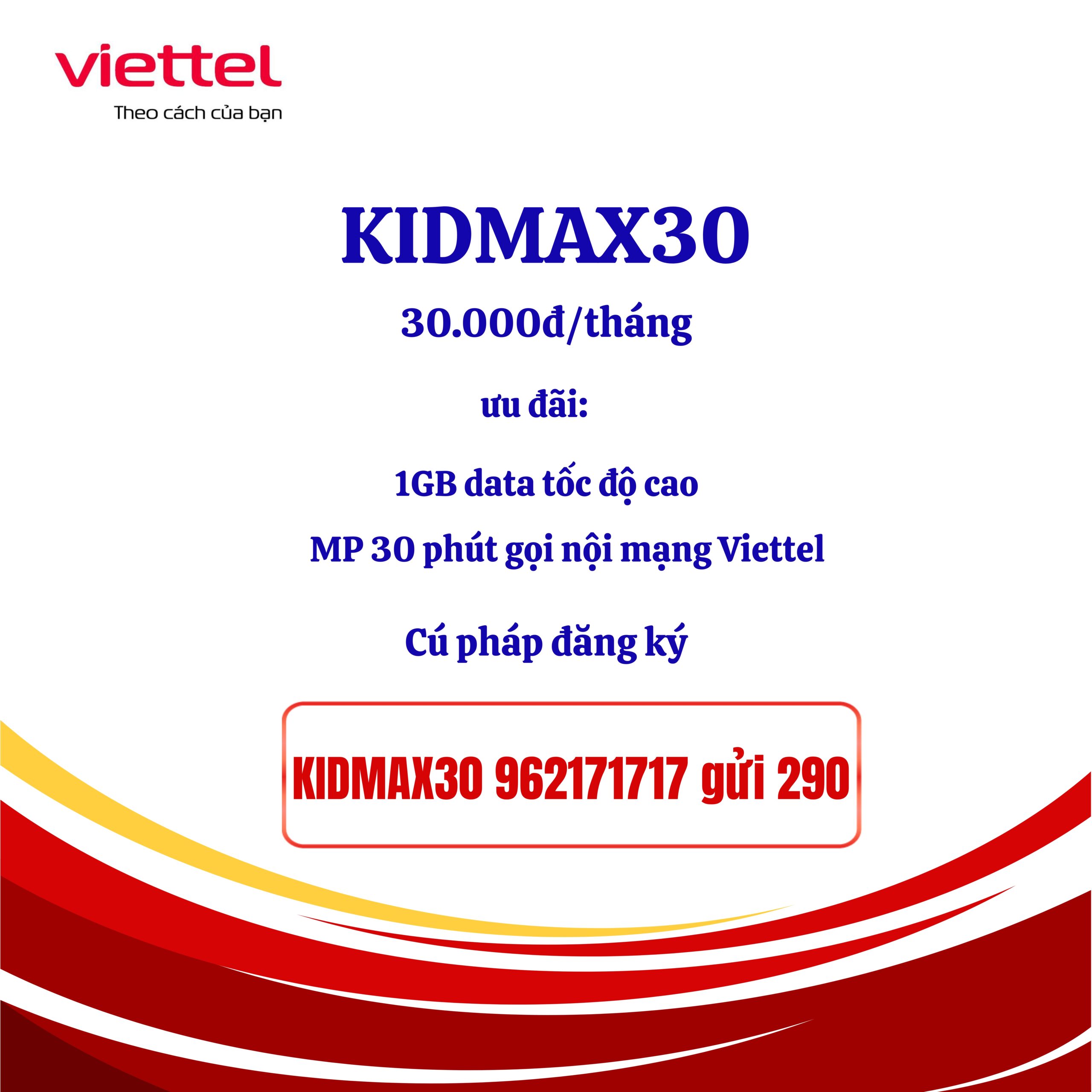KIDMAX30 là gói cước chuyên biệt của Viettel dành riêng cho SIM sử dụng trong đồng hồ định vị trẻ em, điển hình như thiết bị MyKID Viettel. Gói cước giúp trẻ em giữ liên lạc với gia đình, định vị vị trí, và sử dụng internet giới hạn – đảm bảo an toàn và tiết kiệm tối đa cho phụ huynh.