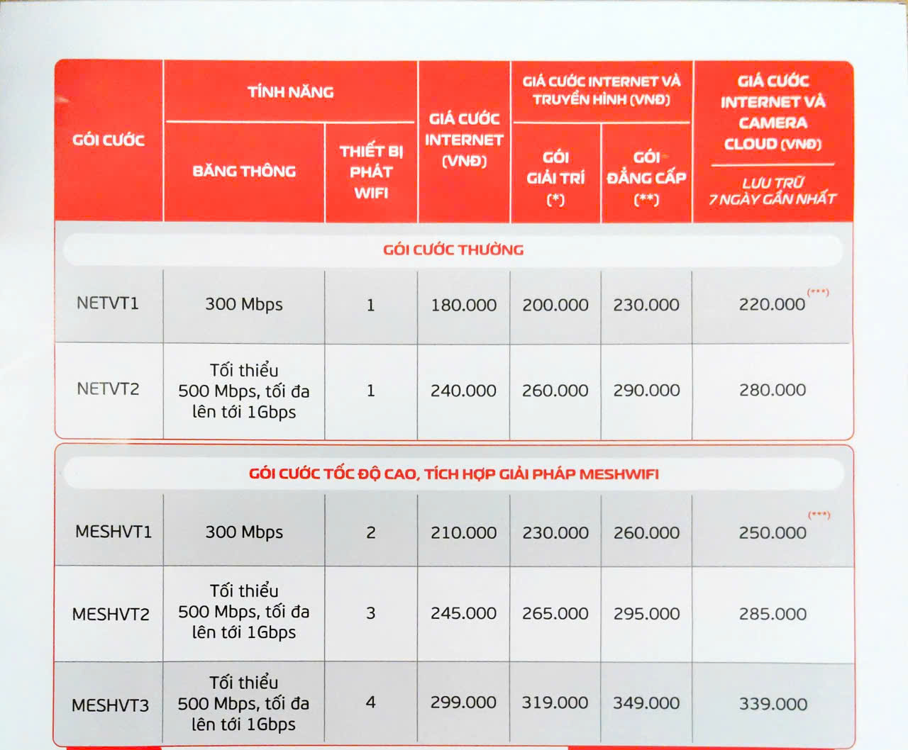 - Trang bị thêm: được trang bị miễn phí camera an ninh trên đường truyền internet ( theo chính sách và điều kiện riêng), cộng thêm 50 Mbps băng thông cho mỗi camera trang bị.