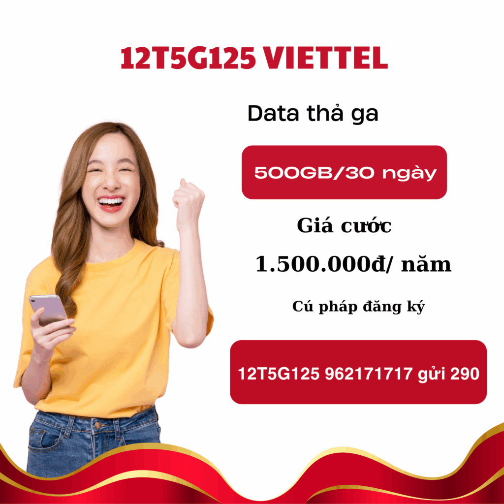 Hướng Dẫn Đăng Ký Gói 12T5G125 Viettel – Nhận 500GB/Tháng, Dùng 12 Tháng Cực Rẻ! Trong năm 2025, Viettel tiếp tục khẳng định vị thế nhà mạng số 1 Việt Nam khi tung ra hàng loạt gói data 5G dung lượng khủng, trong đó 12T5G125 nổi bật nhất nhờ ưu đãi 500GB/tháng – sử dụng […]